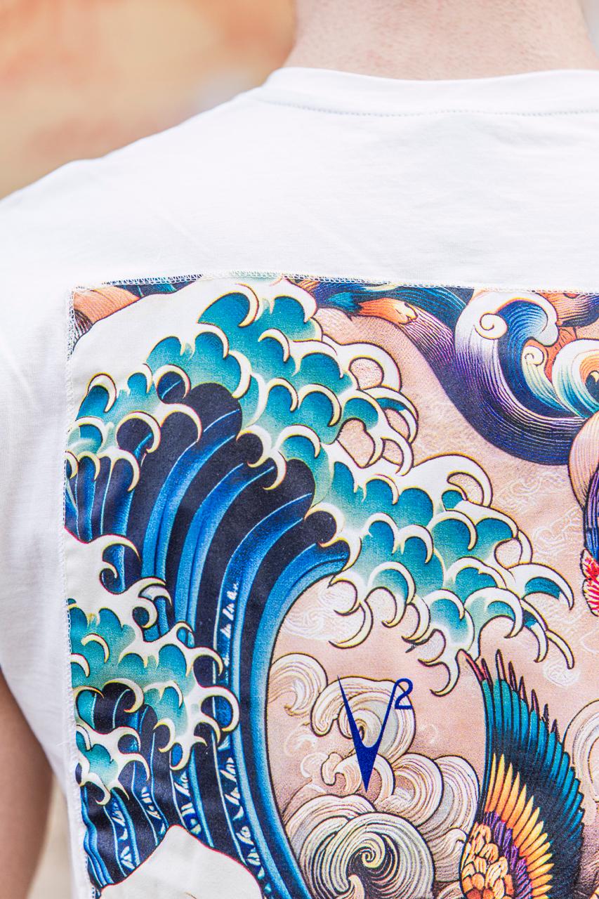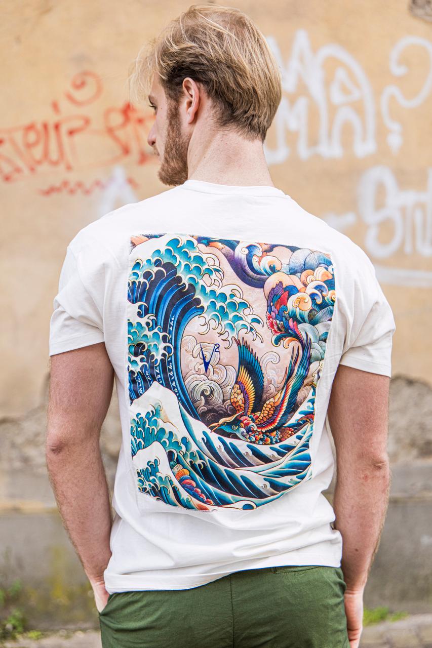 T-shirt Japan V2 stampa fenice panna