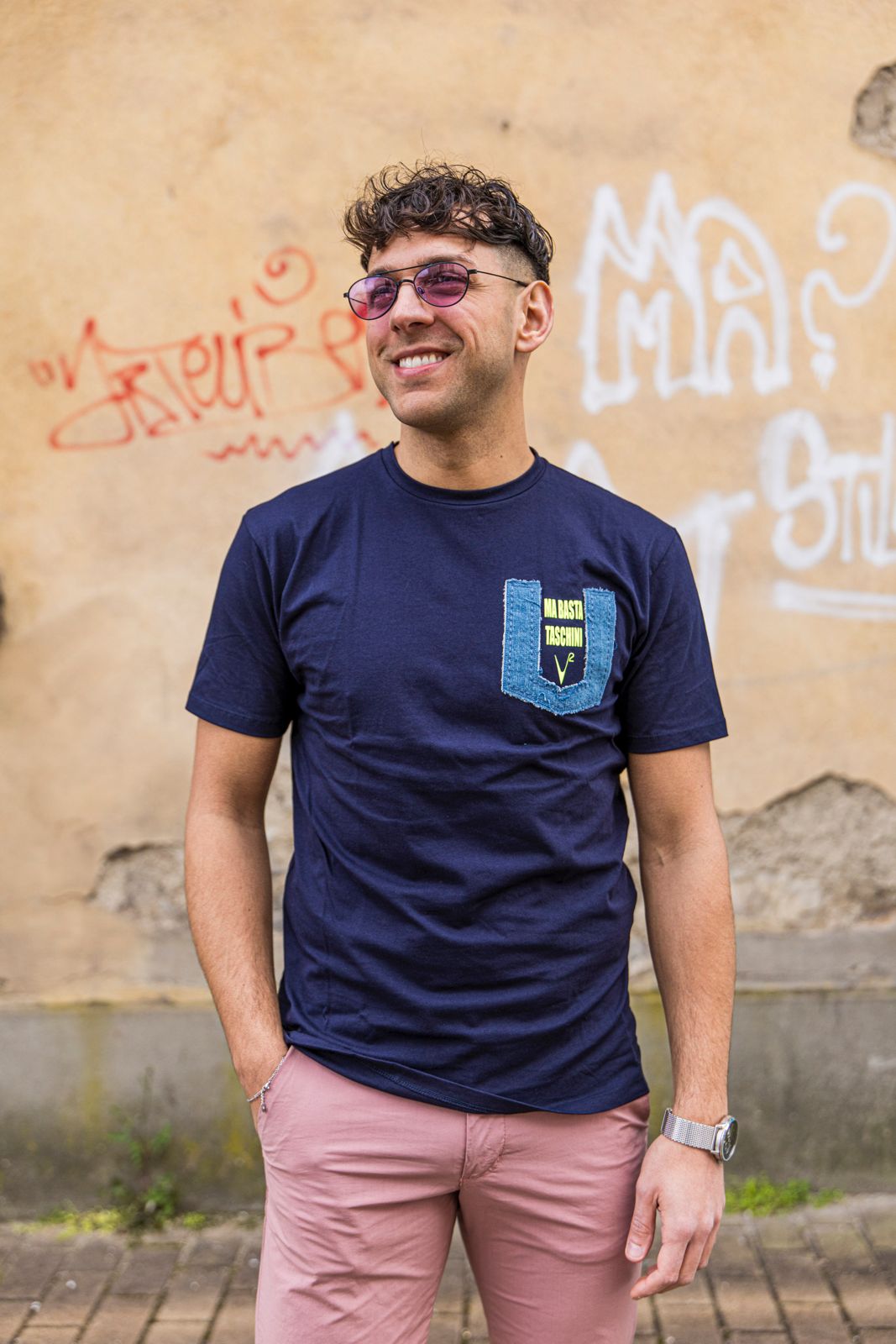 T-shirt V2 “MA BASTA TASCHINI” blu